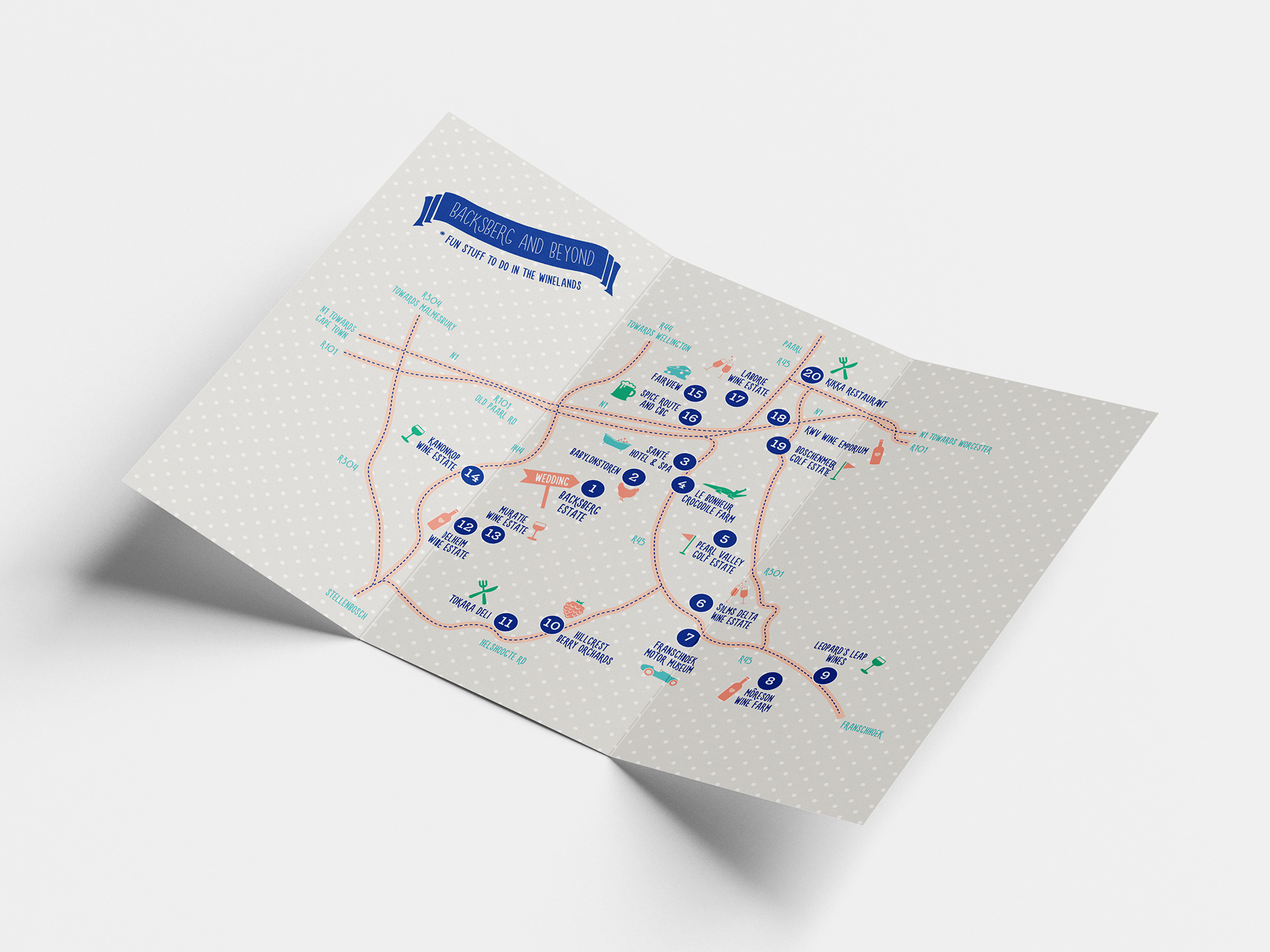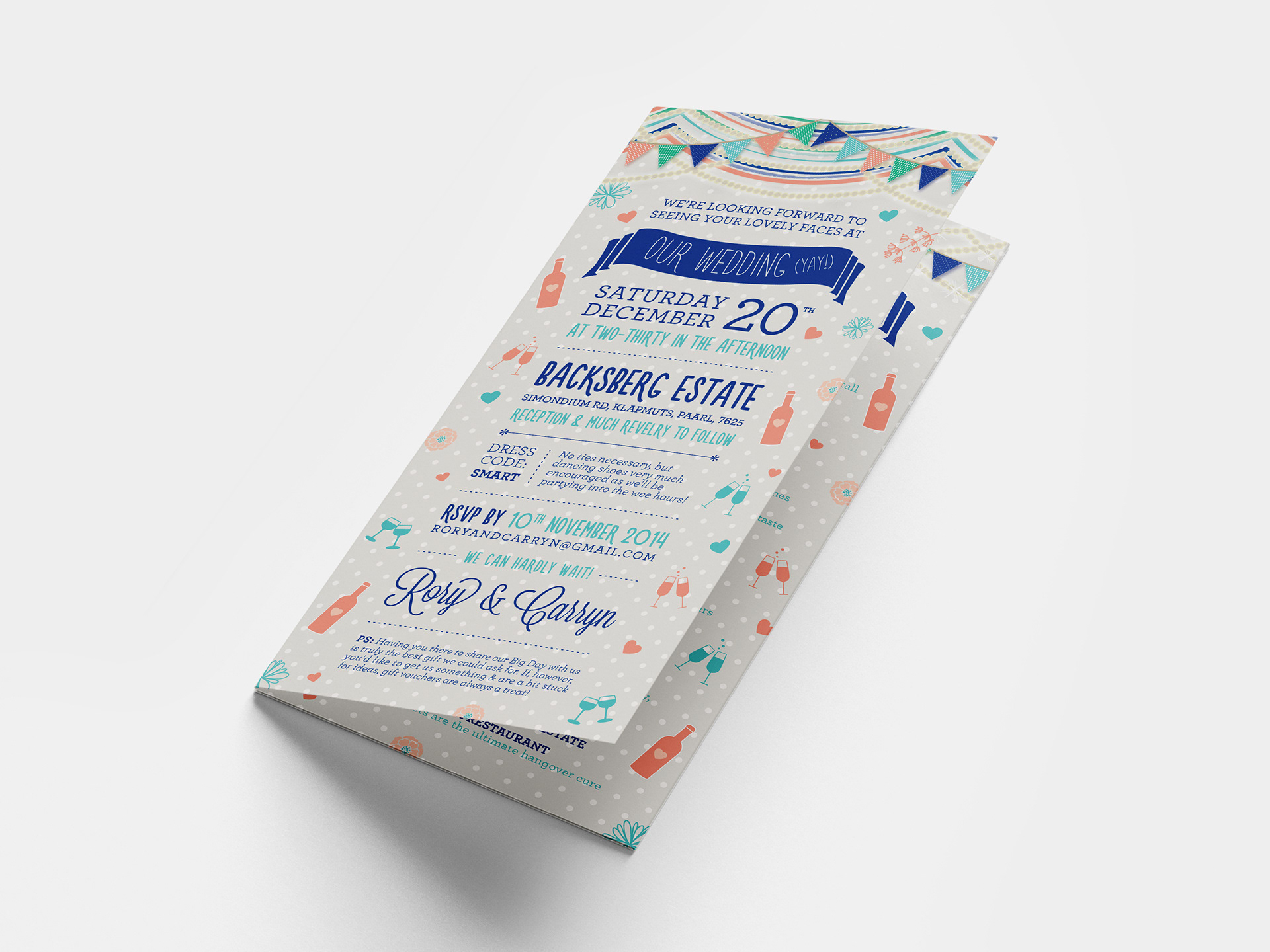 This digital wedding save the date and printed invitation were designed for a special, fun-loving couple. The multifunctional invitation not only shared key event details but also doubled as a compact travel guide for guests. At the couple’s request, the invitation included a custom map highlighting the wedding venue and their recommended local spots to explore. The final designs reflect their joyful, outgoing personalities and the celebratory tone of their wedding.